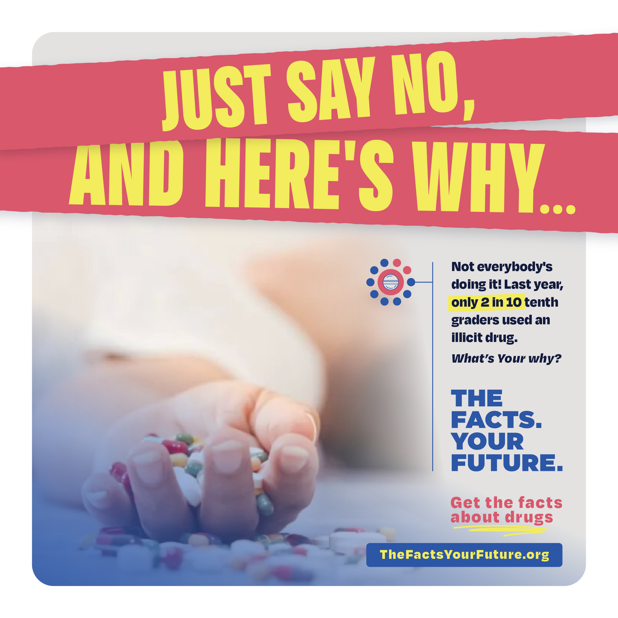 Social media graphics to educate the public about the dangers and impacts of substance abuse and drive individuals to the website to learn more.